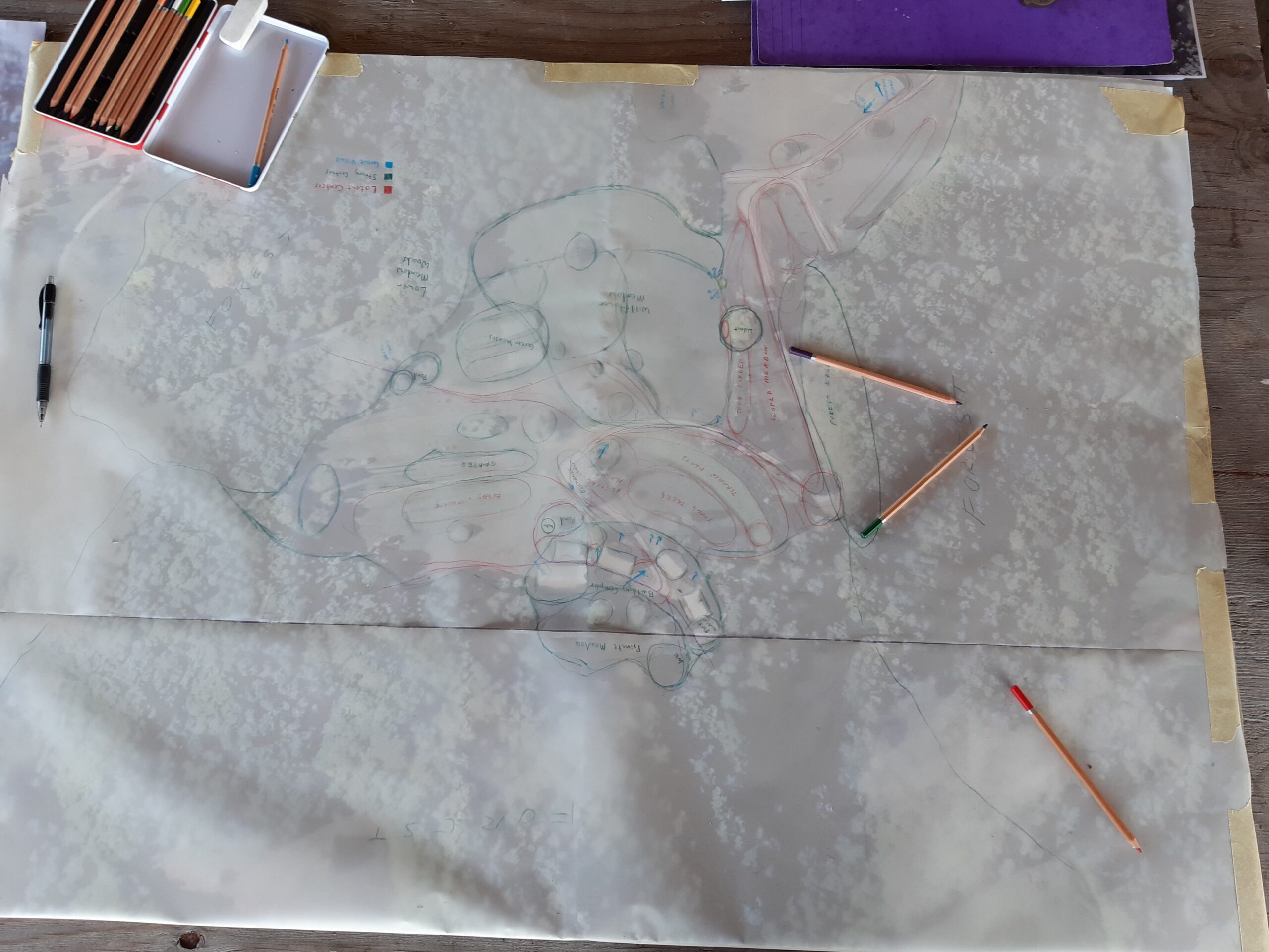 V partě asi deseti lidí jsme analyzovali místo na základě metod „analýzy center“ a „pocitové mapy” a identifikovali jsme několik pravděpodobných pěšin nahoru podle toho, jak nás nohy vedly. Osobní intuice vystřídaly debaty s argumenty a výsledná rozhodnutí byla vždy konsenzuální.