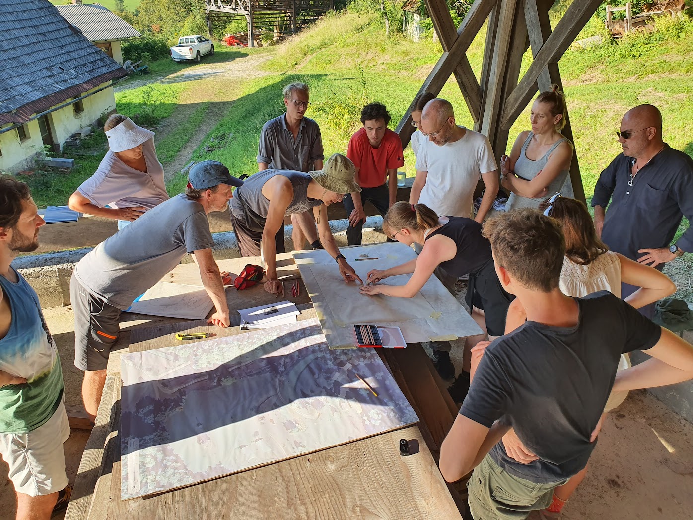Jan přijel s otcem z USA do Slovinska, kde se narodila a vyrostla jeho maminka. Koupil pozemek ve svahu se starou usedlostí a začal pěstovat zeleninu a zvelebovat tamní stavení. Poptal dvě architektonické kanceláře, aby mu vypracovali studii. Dostal megalomanské návrhy, které ani nedostal příležitost pořádně konzultovat. Jeden z architektů se ani na pozemek nepřijel podívat a návrh vypracoval dle digitálních podkladů. Jan ztratil víru v architekty. Později poznal a spřátelil se s Orem Ettlingerem, architektem a mým mentorem, který zná metody, jak navrhovat tak, aby každý zásah obrazně řečeno vyrostl z místa, podobně jako to vnímáme u sídel vybudovaných našimi předky. Or také navrhl, že by pozval více lidí a tuto zkušenost zprostředkovat i ostatním. Jan souhlasil.