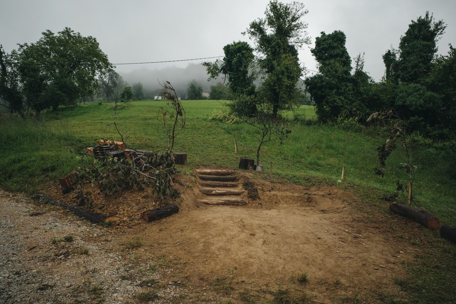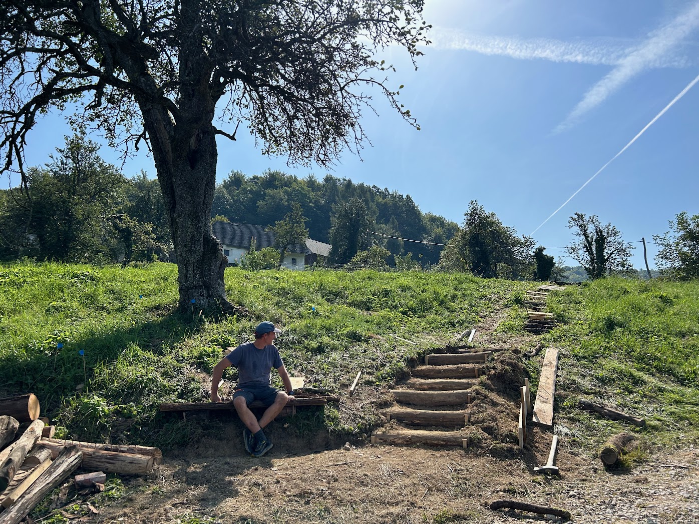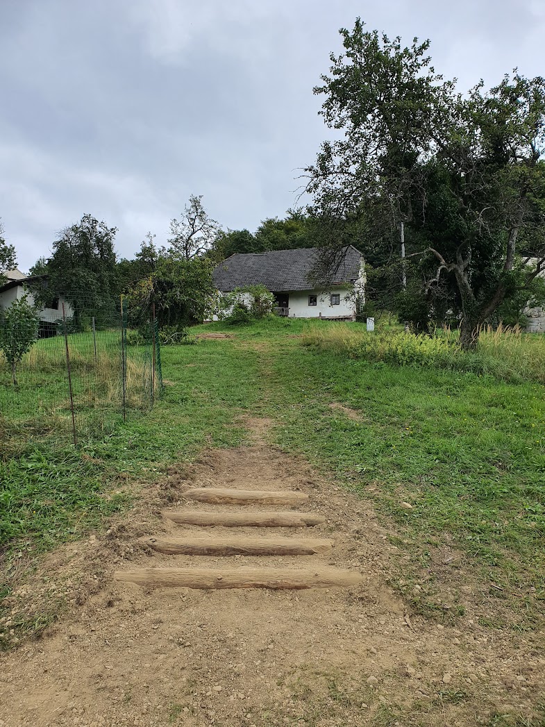 Těch pár klád, které jsme za pár dní položili do země, byl ten nejjednodušší krok, který lze v daný okamžik učinit a i přesto může léta sloužit. Časem se mohou tyto akupunkturní body rozvinout v solidní kamenné schody, opěrné zídky se skutečně zpevněnou pěšinou. Důležitější než diskuze o funkci a formě nám byla společná zkušenost, ve které jsme se shodli na tom, že tady a teď s tím co máme k dispozici, je to tak správně.